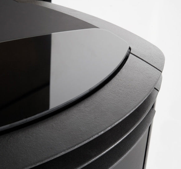 • Feuerraumtür, obere Abdeckung und Sockel aus emailliertem Gusseisen