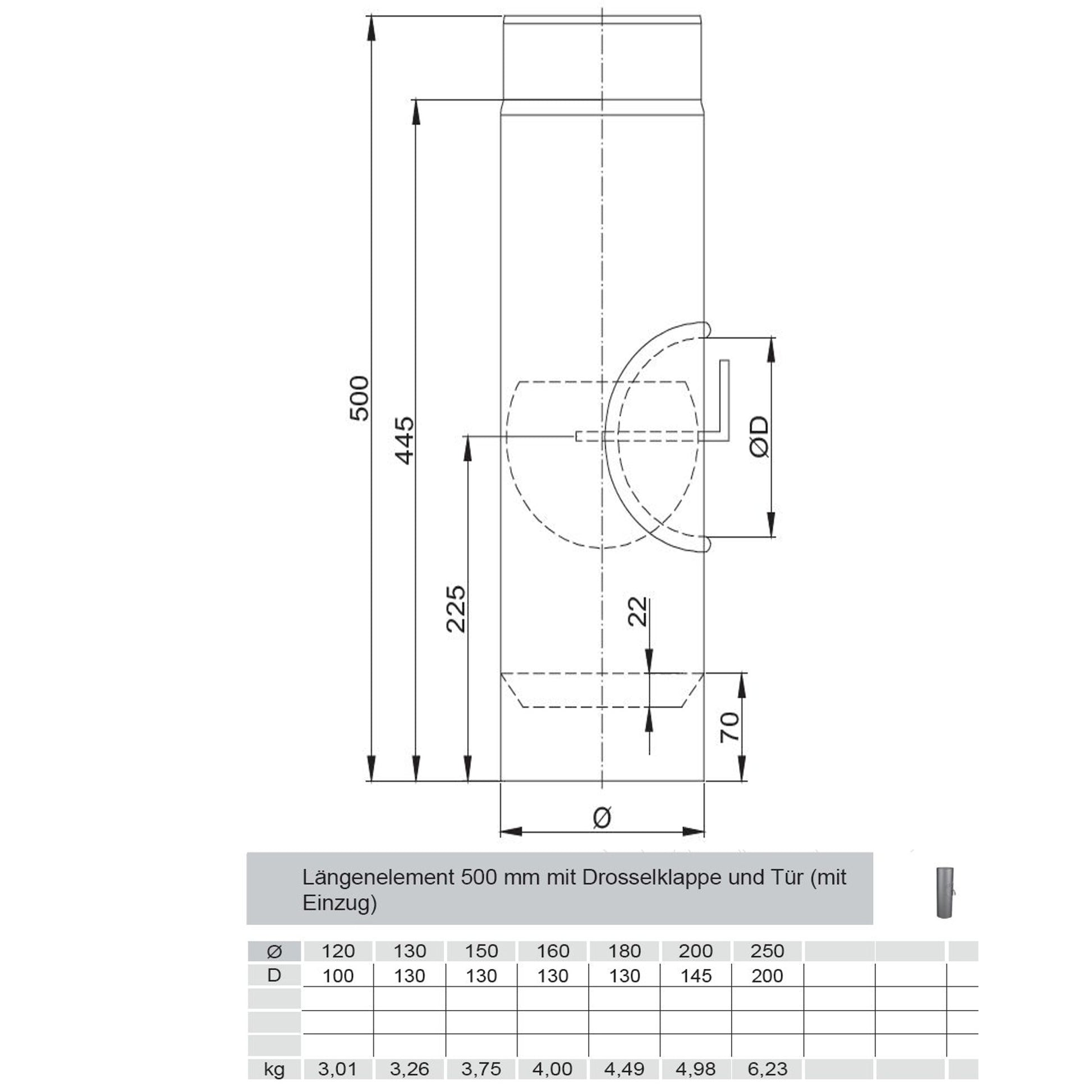 Längenelement 500 mm mit Drosselklappe und Tür (mit Einzug)