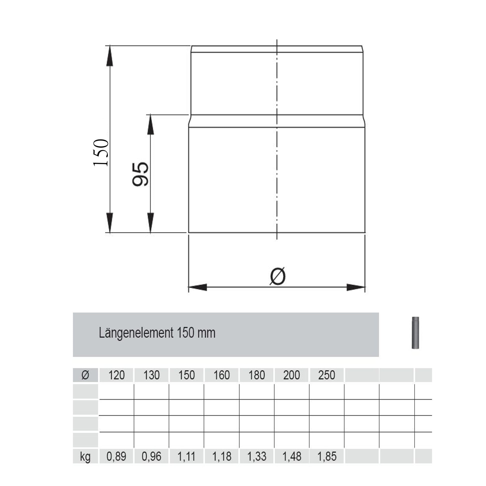 Jeremias Ofenrohr Längenelement 150 mm-kürzbar | schwarz | Ø120mm
