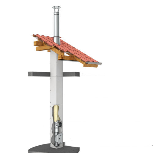 Leichtbauschornstein-System bestehend aus Calciumsilikat Brandschutzplatten mit Jeremias Innenrohren EW-FU oder EW-KL und 25 mm Dämmschalen. Ausführung über Dach mit System DW-ECO 2.0, DW-FU oder Schacht mit Verkleidung möglich.Bei höheren Abgastemperaturen als 400°C ist ein Schacht mit 60 mm Wandstärke, 25 mm Dämmschalen und ein zusätzlicher Ringspalt von 20 mm erforderlich. Dadurch ergeben sich größere Schachtinnen- und Außenmaße.