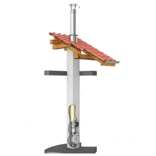 Leichtbauschornstein-System bestehend aus Calciumsilikat Brandschutzplatten mit Jeremias Innenrohren EW-FU oder EW-KL und 25 mm Dämmschalen. Ausführung über Dach mit System DW-ECO 2.0, DW-FU oder Schacht mit Verkleidung möglich.Bei höheren Abgastemperaturen als 400°C ist ein Schacht mit 60 mm Wandstärke, 25 mm Dämmschalen und ein zusätzlicher Ringspalt von 20 mm erforderlich. Dadurch ergeben sich größere Schachtinnen- und Außenmaße.