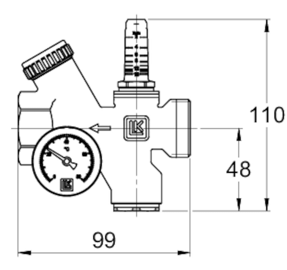 Der Pfeil auf dem Ventilgehäuse gibt die Durchflussrichtung an. Das Ventil benötigt eine gerade Einlaufstrecke von mindestens der Länge des Ventilgehäuses, um eine korrekte Durchflussmessung zu gewährleisten.