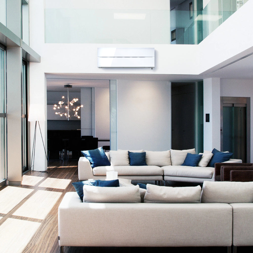 Klimaanlagen von MITSUBISHI ELECTRIC sind darauf ausgelegt, energiesparend zu arbeiten. Durch den Einsatz von Invertertechnologie passt sich die Verdichterleistung immer dem tatsächlichen Kühl- sowie Heizbedarf der Anlage an und arbeitet daher äußerst effizient. Das schont die Umwelt und senkt die Energiekosten. Die Einsatzmöglichkeiten sind dabei vielfältig, denn je nach Anforderung und Anzahl der zu klimatisierenden Räume stehen verschiedene Systemvarianten zur Verfügung. In der Monosplit-Variante wird ein Wandgerät mit dem Außengerät verbunden. So kann ein Raum einfach und schnell klimatisiert werden.
