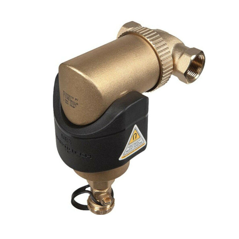Der Schlammabscheider MB3 mit variablem Anschluss, Messinggehäuse und externem Magnet dient der schnellen und kontinuierlichen Entfernung ferromagnetischer und nicht magnetischer Schmutz-und Schlammpartikel aus Heiz- oder Kühlkreisläufen. Der variable Anschluss ermöglicht eine horizontale, vertikale und diagonale Einbaulage (Medium Wasser und Wasser / Glykol 50/50 %). Partikel bis zu einer Größe von 5 Mikrometern lassen sich ohne Betriebsunterbrechung abscheiden und abschlammen. Mit abschraubbarem Gehäuseunterteil zu Reinigungs- und Revisionsarbeiten und komplett mit Abschlammhahn.