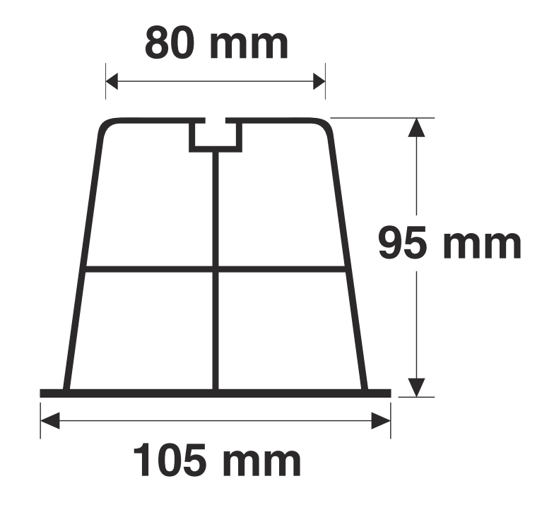 Die konische Form der Konsolenfüße verleiht der Konsole Stabilität und sorgt für eine gleichmäßige Gewichtsverteilung. Die Maße der Konsole betragen unten 105 mm Breite, oben 80 mm Breite und 95 mm Höhe bei einer Länge von 450 mm.