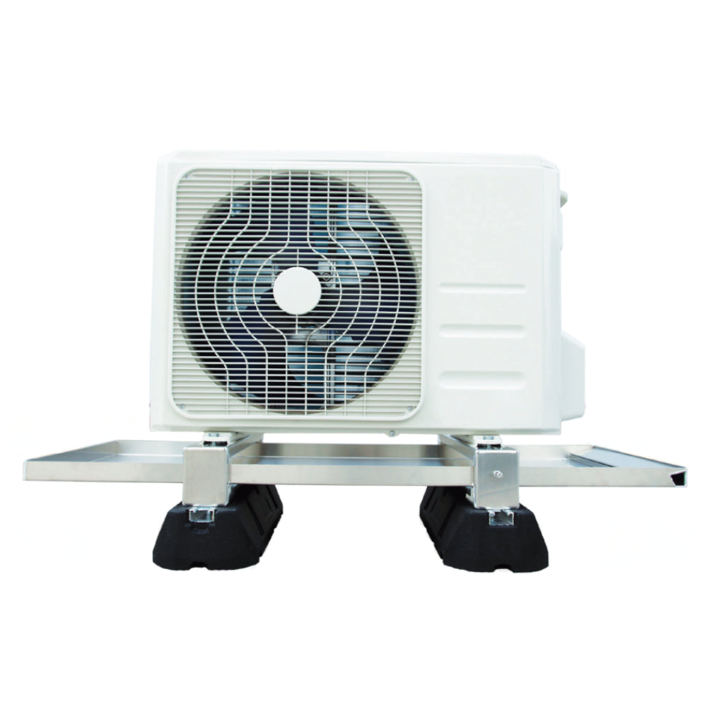 Die dazu gehörenden Aufnahmen/Füße verbinden das Klimaaußengerät o. ä. mit dem Ölprotektor und dem Befestigungssystem für Wandmontage oder Bodenaufstellung. Dabei ist eine Installation auf handelsüblichen Aufstellbalken, Schwingungsdämpfern und Wandkonsolen möglich.