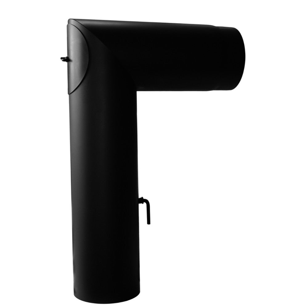 Kniewinkelrohr Ferro-Lux vom Hersteller Jeremias ist zum Anschluß eines Kaminofens an einen Schornstein. Verbindungsleitung aus Stahlblech DC01 (ST12)mit eingezogener Steckverbindung, für den Einsatzbereich im Wohn- und Sichtbereich für den Anschluss an Kaminöfen.