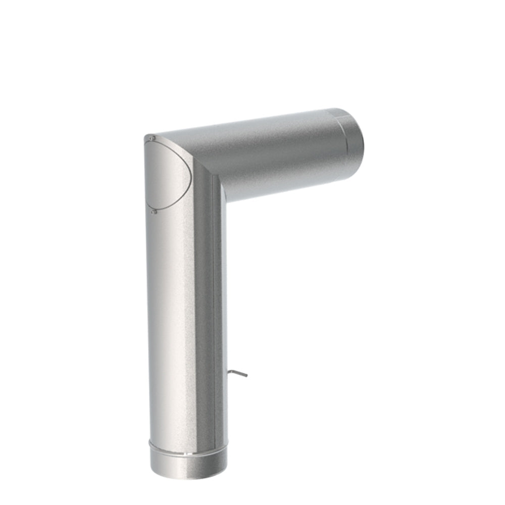 Jeremias Winkelrohr mit Tür und Drosselklappe | Schenkellänge 500/700mm | Edelstahl Gebürstet | Ø 150 mm