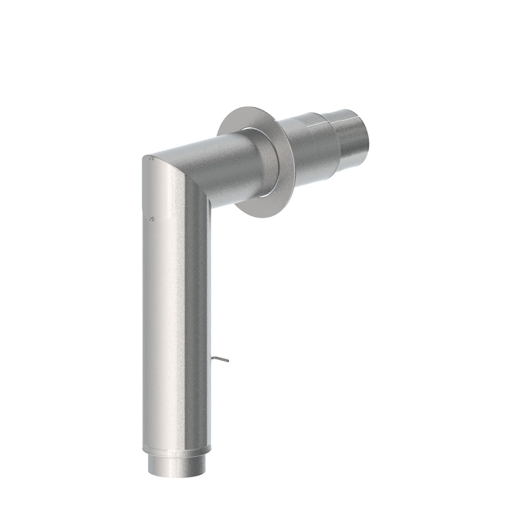 Doppelwandige Verbindungsleitung aus Edelstahl für den Anschluss an Kaminöfen. Gedacht für den Einsatz im Wohn- und Sichtbereich und für eine trockene Betriebsweise.