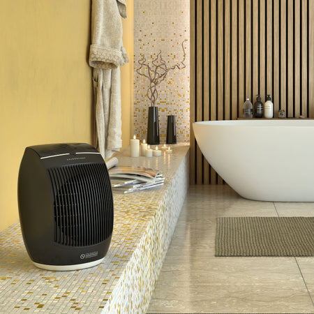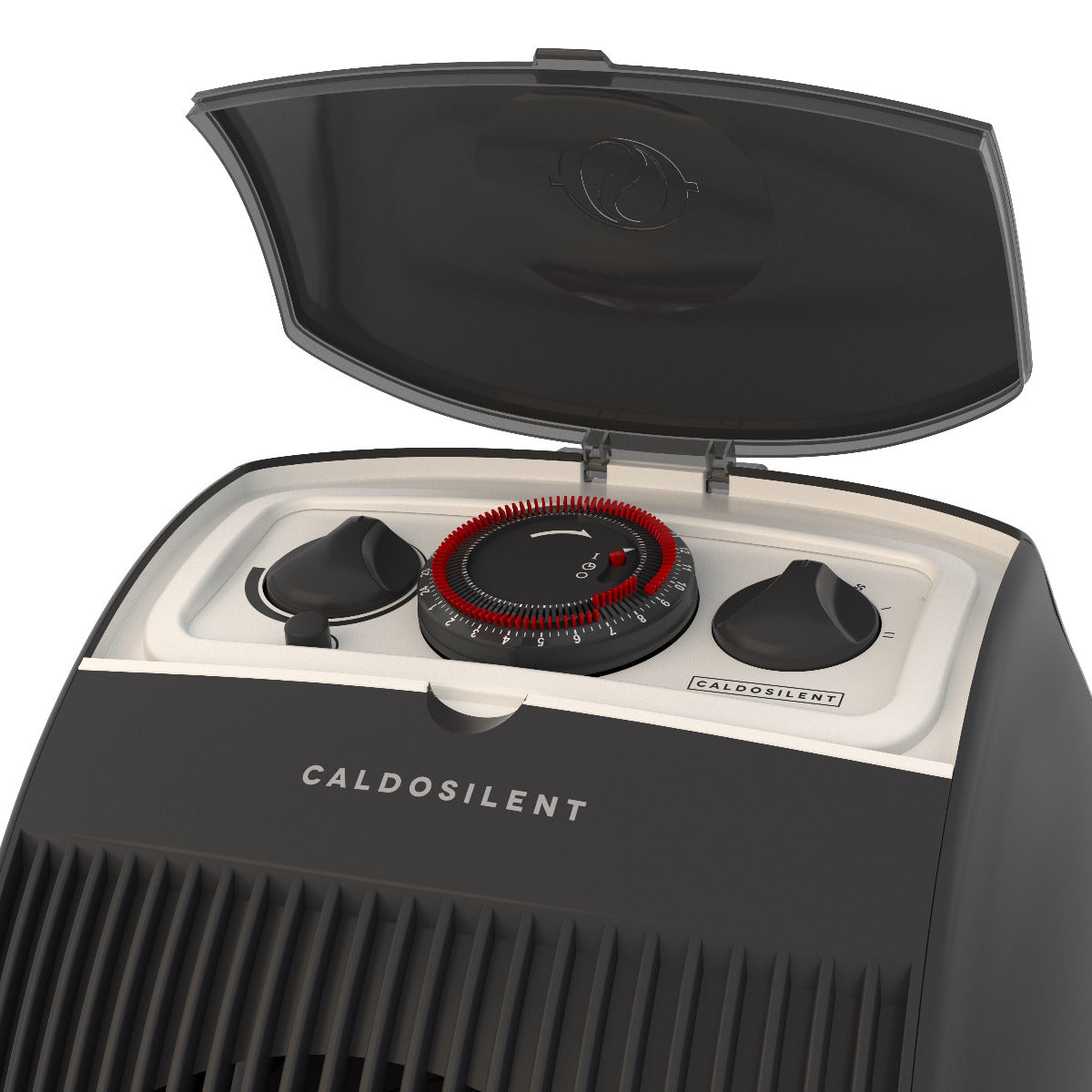 Der CaldoSilent ist der leistungsstärkste und gleichzeitig leiseste elektrische Heizlüfter der Produktpalette. Durch die Silent System-Technologie wird die empfundene Lautstärke um 50 % reduziert. Die 90°-Schwenk-Funktion sorgt für eine optimale Wärmeverteilung im Raum und dank des 24h-Timers können Sie Ihre Wohlfühltemperatur zu jeder Tageszeit genießen. Darüber hinaus bietet der CaldoSilent maximalen Schutz gegen Tropfwasser und kann so auch zum Beispiel im Bad verwendet werden.