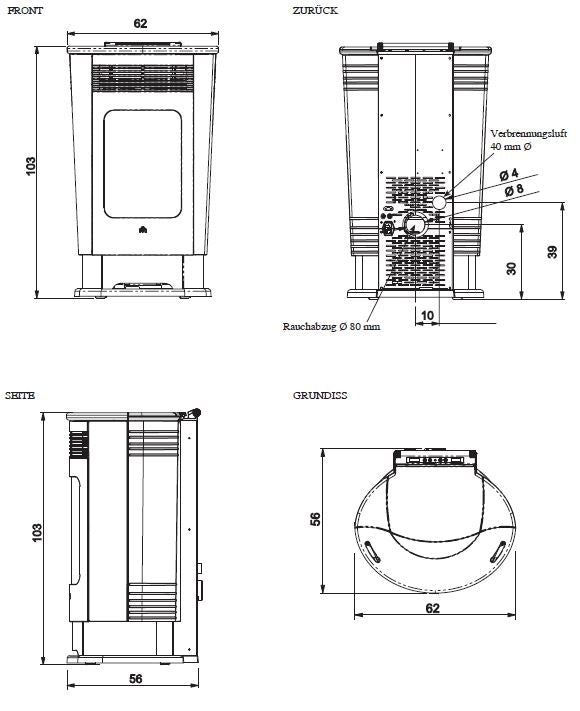 Der Pelletsofen Logo ist ein Pelletsofen im Originellem Design, die Seitenwände bestehen aus dunkelgrauem Stahl. Der Feuerraum besteht aus robustem Stahl und Gusseisen.