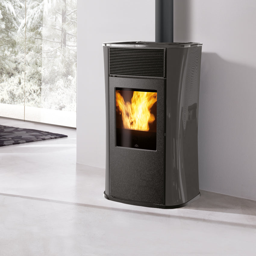 Der Pelletsofen Mya Stahl vom Top Hersteller Edilkamin wurde entwickelt, um den Aufstellraum mit Strahlungswärme zu beheizen. Dies gesschiet über die automatische Verbrennung von Pellets im Feuerraum, durch Abstrahlung der Wärme über das Sichtfenster und durch Konvektionsöffnungen die oben eingearbeitet sind.