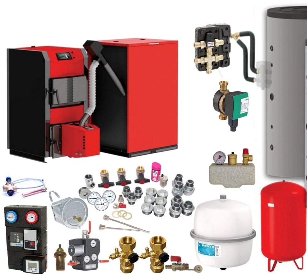 Das Set beinhaltet alle technischen Komponenten für die Bedienung des Puffer -> Kesselkreislaufs, des Puffer -> Heizkreises und des Brauchwasserkreislaufs