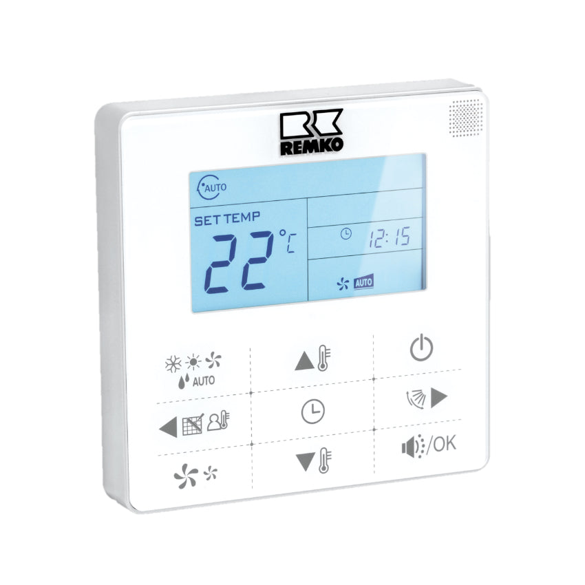 Diese kabelgebundene Fernbedienung ist für die Steuerung von Remko Klimageräten der Serie ATY, RVD, RXT, MXD und MXT. Mit dieser Bedienung können Sie über das Touch Display ganz bequem Ihre Klima-Innengeräte steuern. Das Gerät verfügt nicht nur über eine große Liste an Funktionen, sondern macht auch optisch einen tollen, modernen Eindruck.