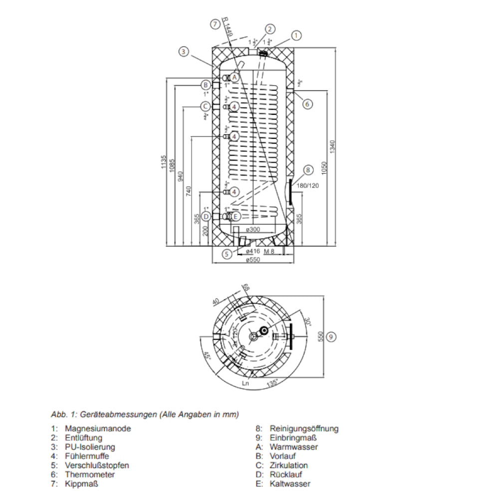 Die verbesserte PU-Schaumisolierung mit 50 mm Stärke bietet eine wirksame Wärmedämmung für einen energiekostensparenden Betrieb. Im Innenbehälter ist eine Magnesiumschutzanode gemäß DIN 4753 eingebaut.