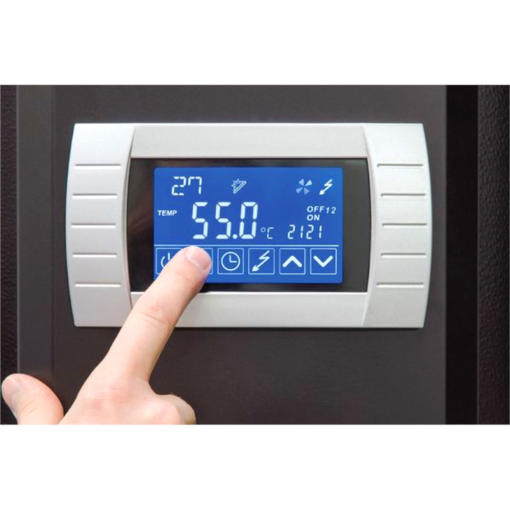 Mit dem intuitiv zu bedienenden Touchscreen-Regler können sämtliche Einstellmöglichkeiten kinderleicht aufgerufen werden. Von der Wassertemperatur über Timer und Urlaubsprogramm bis zur Legionellen-Funktion sind alle Daten einfach zu kontrollieren und anzupassen. Zudem steht ein Sparbetrieb mit mindestens 40 °C zur Verfügung sowie eine automatische Abschaltung der Wärmepumpe bei Temperaturen unter - 5 °C. Der einstellbare Umluftbetrieb mit zwei Ventilatorstufen kann genutzt werden, um den angeschlossenen Raum zu entlüften, ohne dass die Wärmepumpe im Betrieb ist.