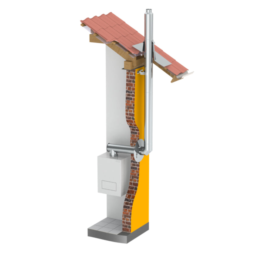 Das TWIN System ist eine Konzentrische, druckdichte Verbindungsleitung mit Kunststoff-Innenrohr und Edelstahl-Außenrohr für Feuerstätten in raumluftunabhängiger Betriebsweise.