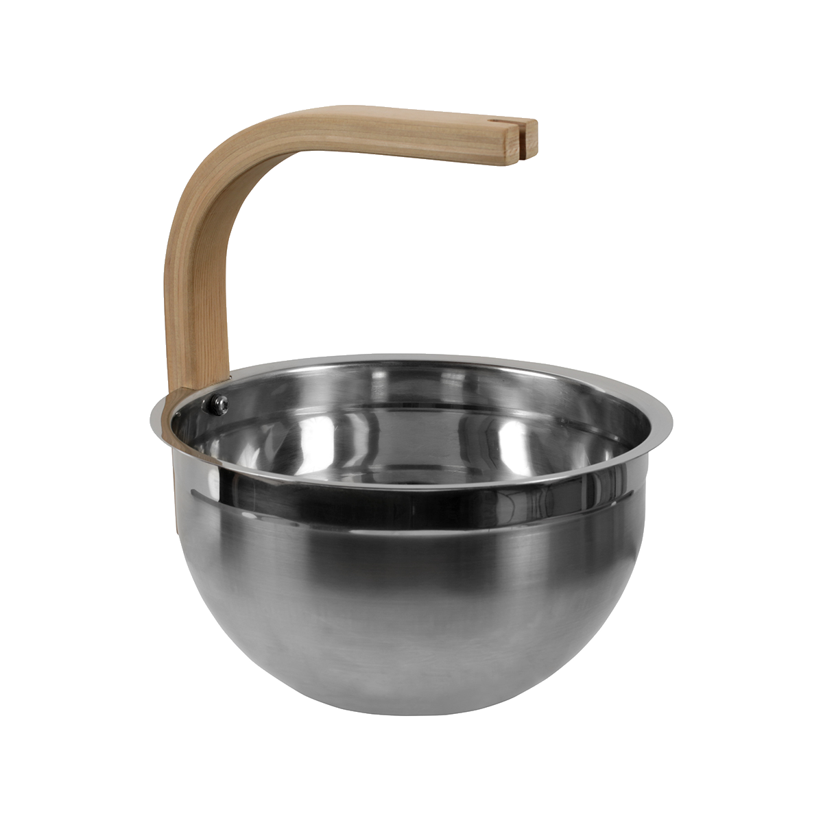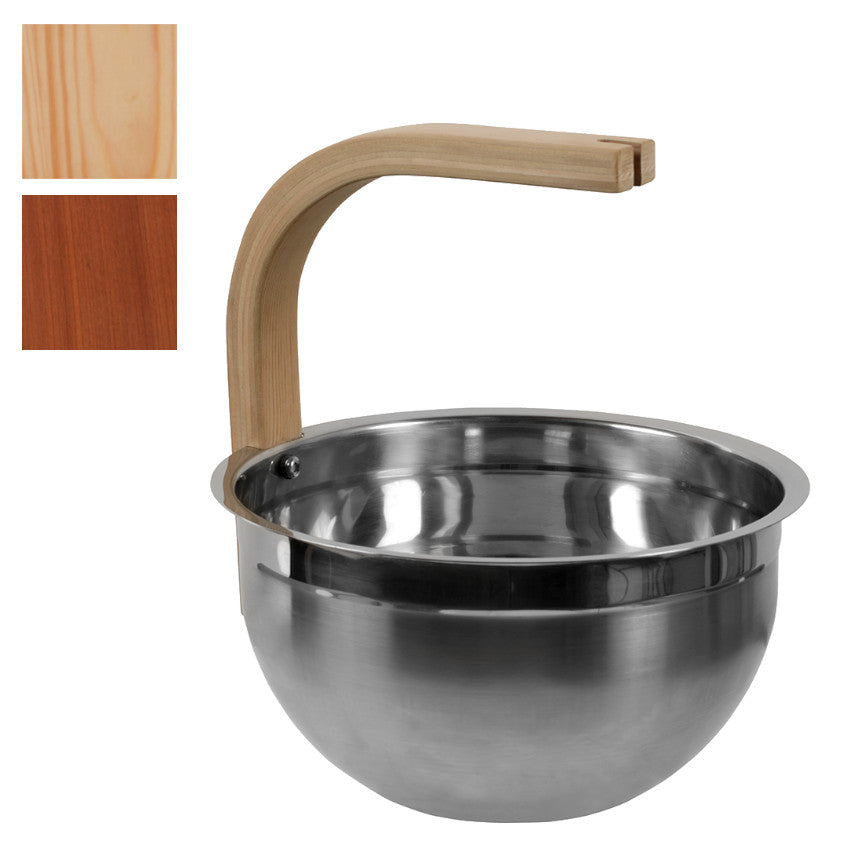 Zeitloser Edelstahleimer von Sentiotec mit modernem gebogenem Griff in Espe oder Red Cedar
