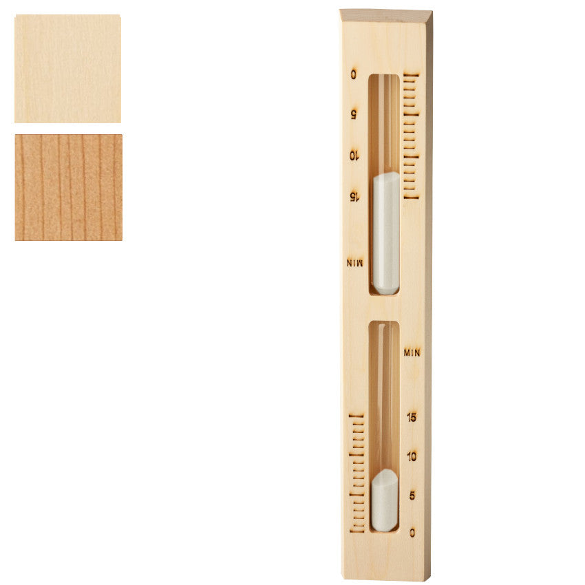 Hübsche Sanduhr aus Holz mit weißem Sand. Reicht für ca. 15 Minuten