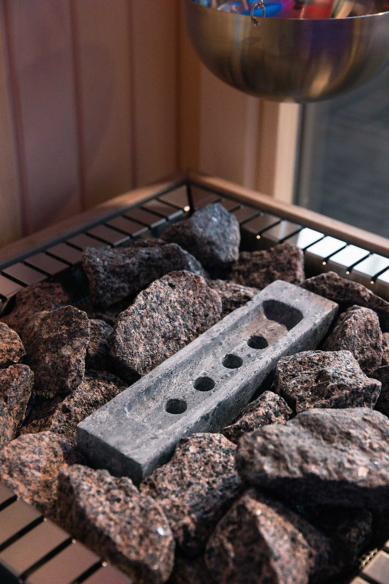 Luftbefeuchter von Sentiotec. Cozy Tanks werden mit Wasser befüllt in den Saunaofen gesetzt, um die Luftfeuchtigkeit in der Sauna zu erhöhen.