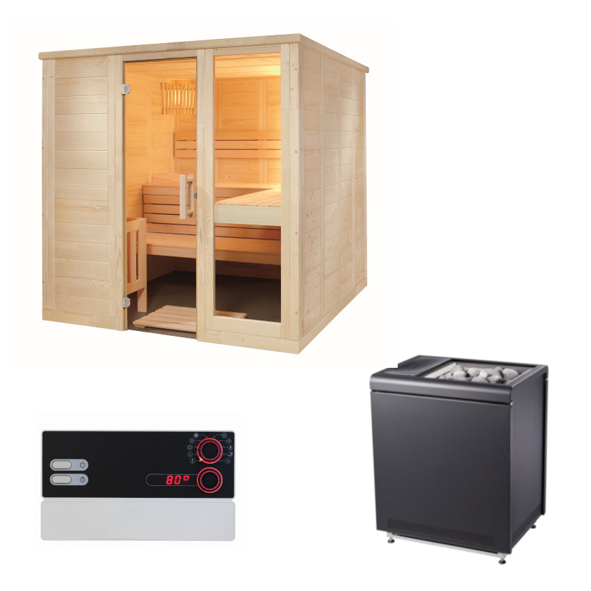 Sentiotec Sauna Set Komfort Large mit Saunaofen Concept R Combi 9 kW und Saunasteuerung Pro C3