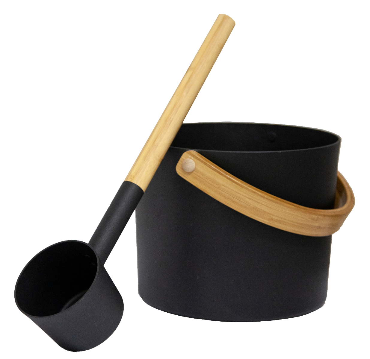 Saunazubehör-Set von Sentiotec bestehend aus Kelle und Saunaeimer.