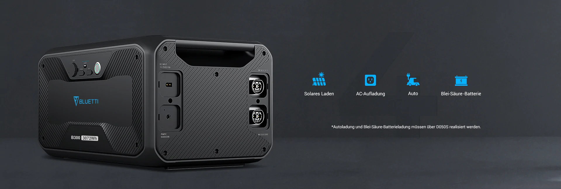 - 2x Anschluss für B300 Batterie