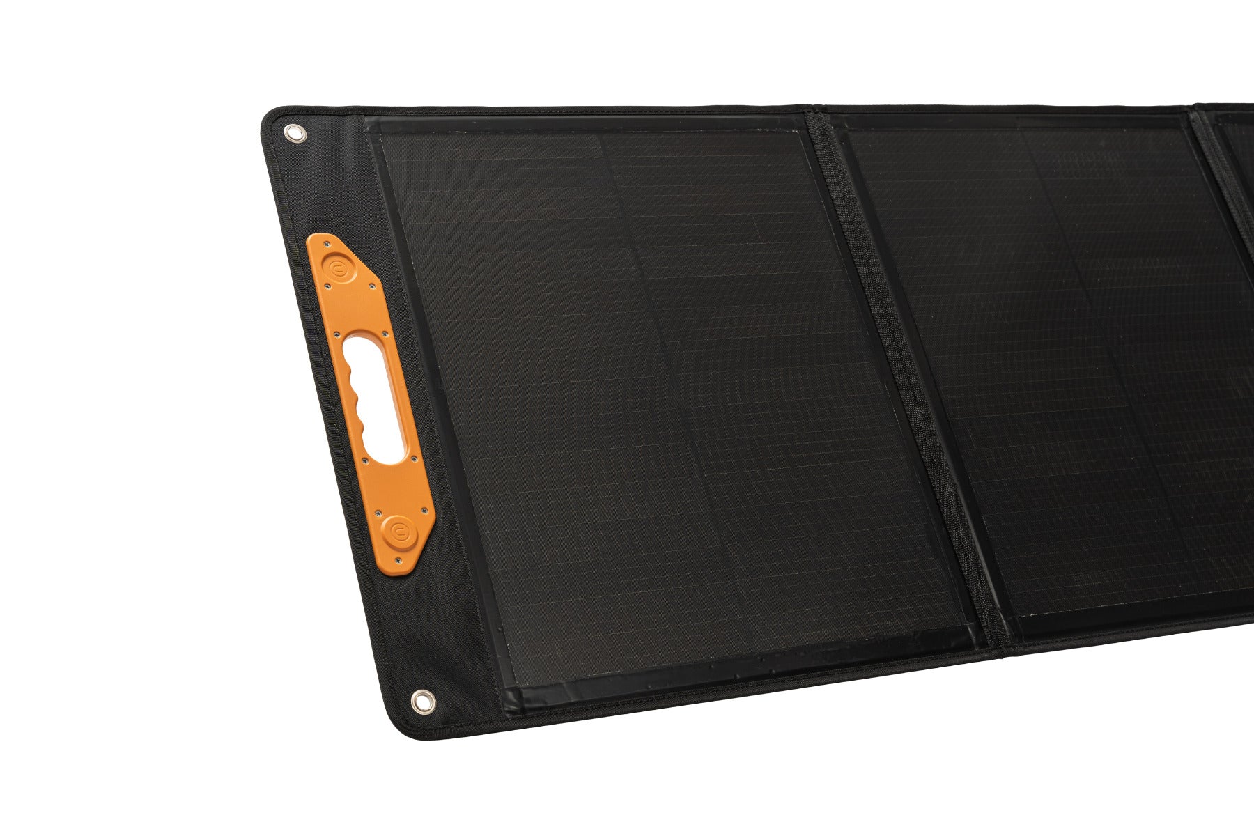 Mit dem faltbaren Solarmodul können Sie einfach Ihren eigenen Strom unterwegs produzieren. Dank des innovativen Designs ist das Modul platzsparend zu transportieren und bietet dadurch ein hohes Maß an Einsatzmöglichkeiten. Die 4 Solarmodul-Einheiten sind in einem robusten faltbaren Design einlaminiert, und ist durch die Möglichkeit jederzeit frei ausrichtbar zu sein optimal nutzbar.