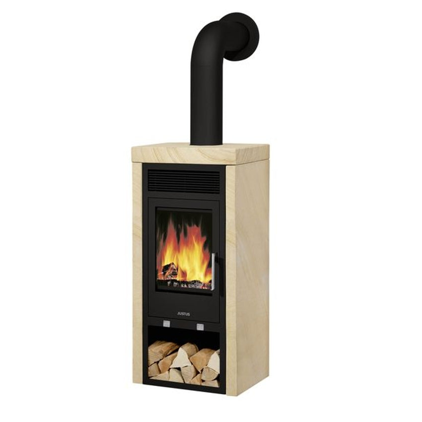 Der Justus Kaminofen Sylt besitzt in der Variante Stein eine Verkleidung aus massiven 60 mm dicken Stein. Dank des luftdurchströmten Griffes besteht keinerlei Verbrennungsgefahr beim Öffnen/Schliessen der Tür.