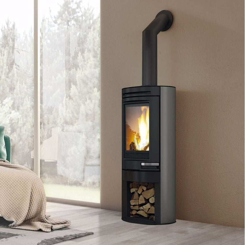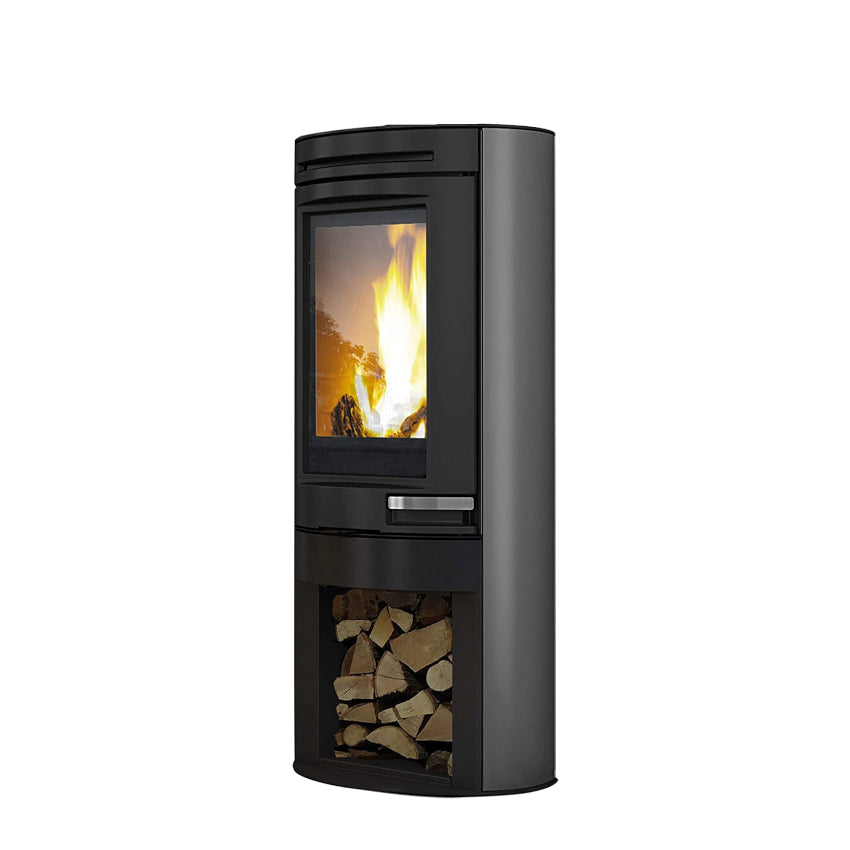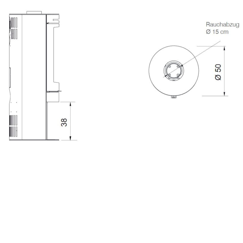 Praktischerweise befindet sich im Sockel ein Holzlagerfach, somit ist das Holz immer griffbereit, wenn es benötigt wird. Das Rauchrohr des Tally 8 lässt sich an der Oberseite bzw. an der Rückseite anschließen. Zudem ist er mit seinen 8,0 kW in der Lage Räume bis zu 210 m³ zu beheizen. Auf Wunsch kann die Wärme in einen angrenzenden Raum geleitet werden. Das geschieht mit einem Ventilator, der per Fernbedienung gesteuert wird. Dazu in der Konfiguration bitte das Air Diffuser Kit auswählen.