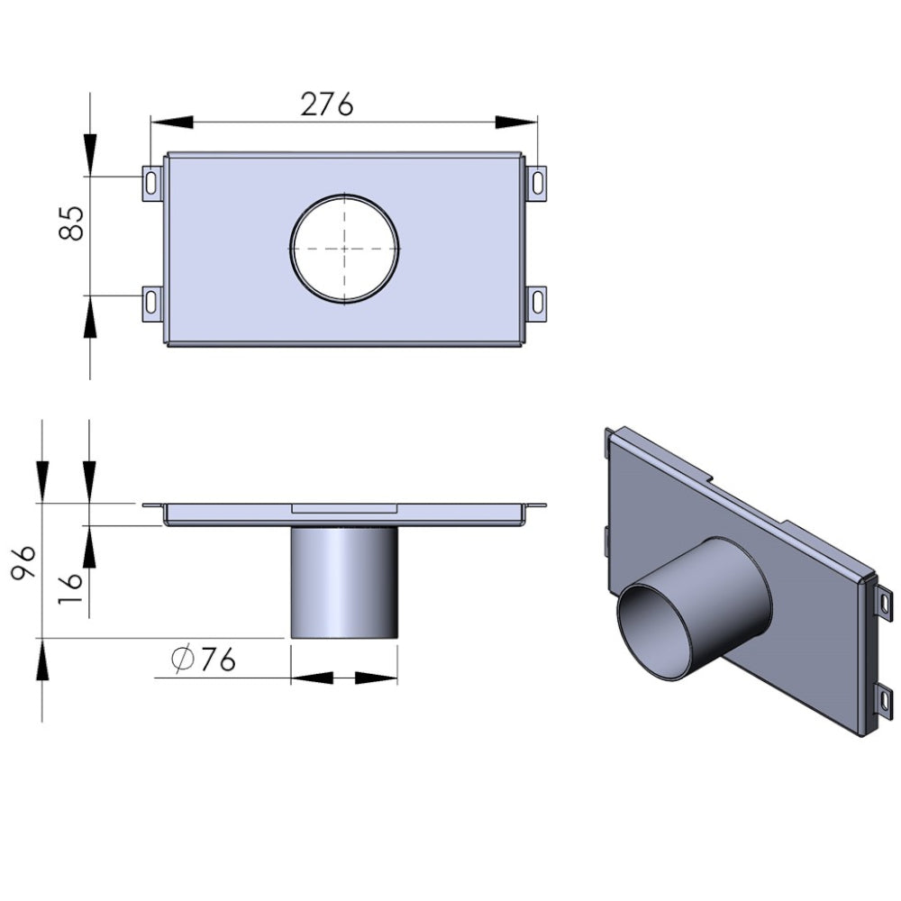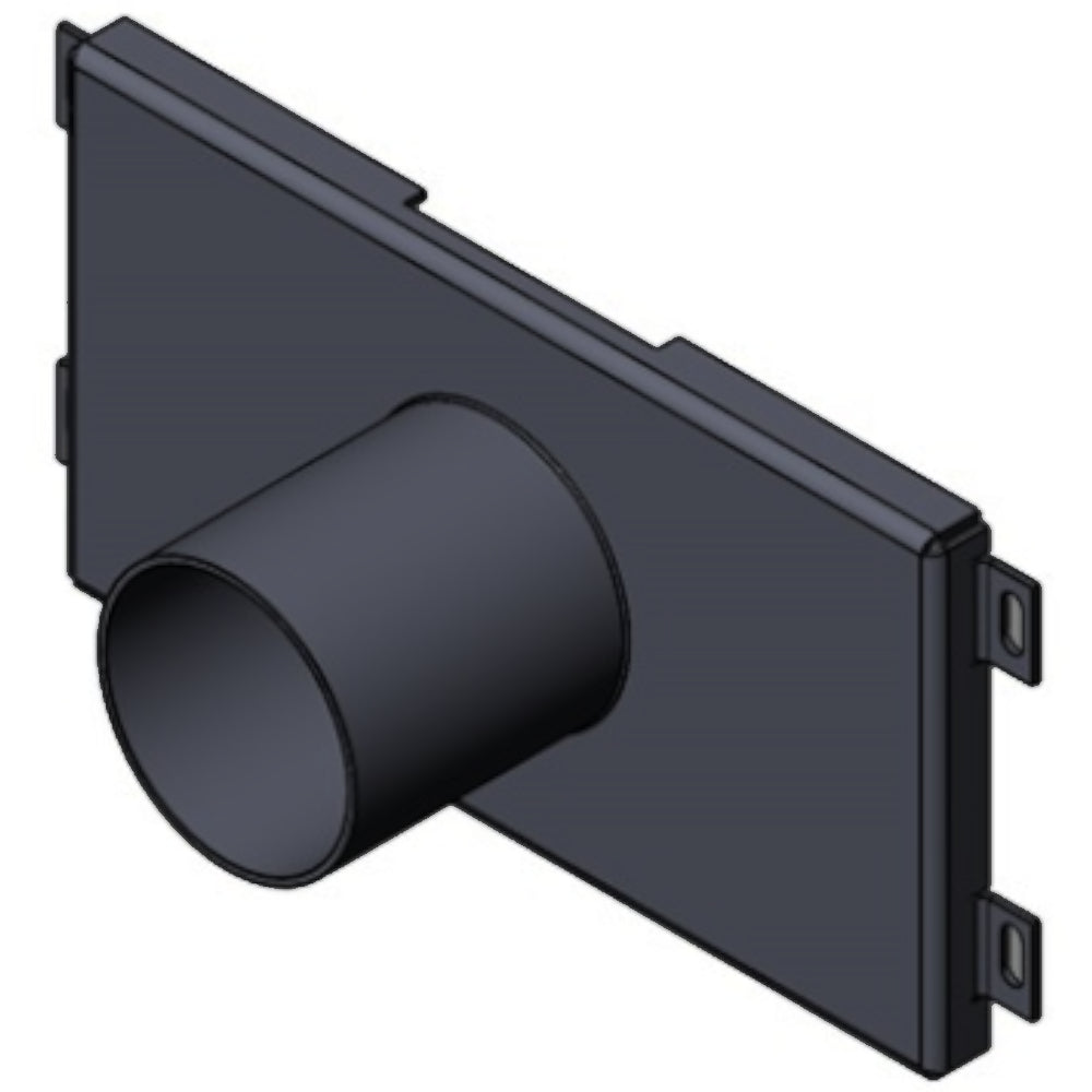Der schwarze Frischluftstutzen mit einem Durchmesser von 80 mm wird senkrecht nach unten an den Kaminofen TT60 montiert.