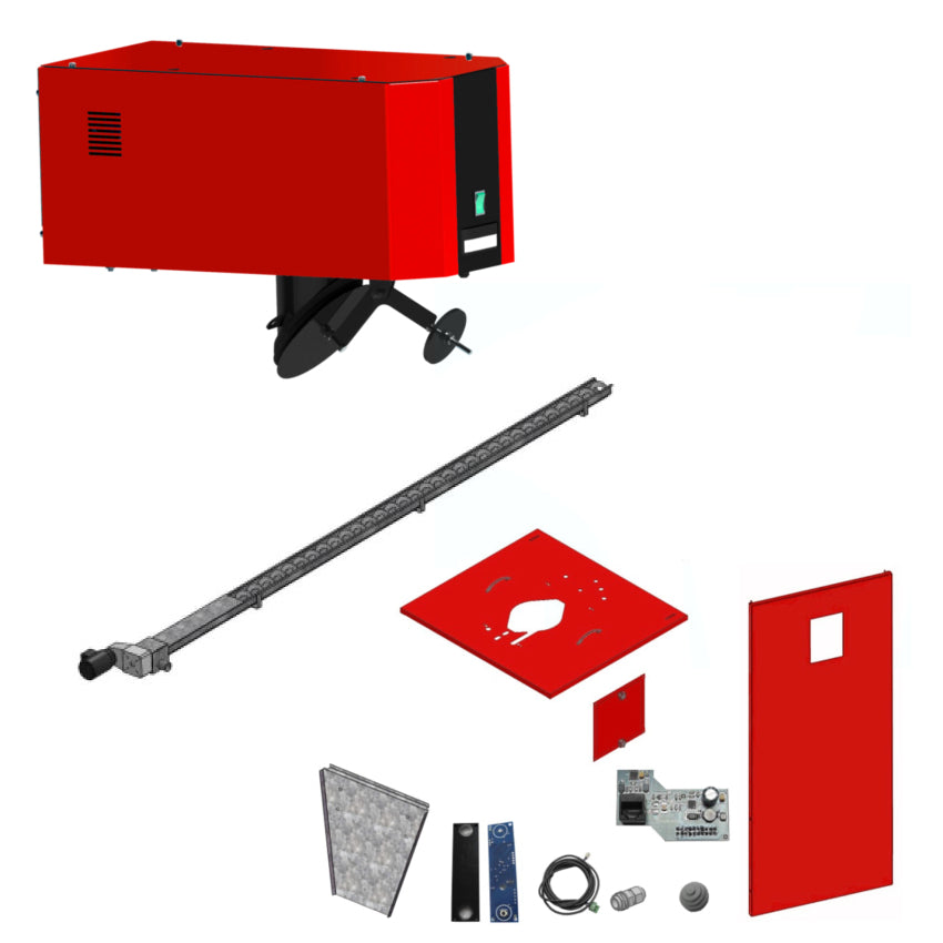 Abgerundet wird das Set durch die speziell für den HKK Bioflux Plus entwickelte ThermoFlux Abdeckung für den Tagesbehälter. Diese Abdeckung ist mit Verbindungspunkten für die Turbine ausgestattet, verfügt über eine Revisionsöffnung für Wartungszwecke und einen Sensor, der den Pelletstand im Behälter überwacht.