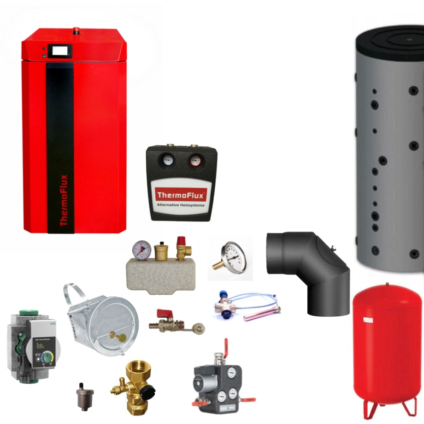 - Pufferspeicheranschlusspaket (Verbinder, Thermometer, Kugelhahn etc.)
