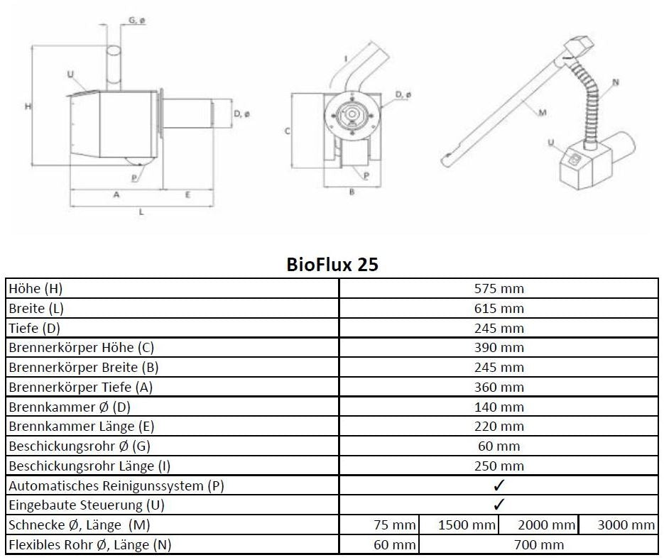 - 1x Bioflux 25 Pelletbrenner mit Flanschplatte und