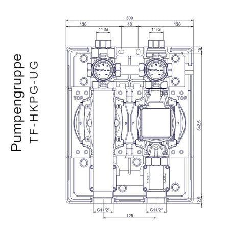 Die ThermoFlux Pumpengruppe TF-HKPG-UG dient der Anbindung von Wärmeerzeugern an einen ungemischten Heizkreis. Pumpengruppen werden zur Verteilung des Heizwassers vom Wärmeerzeuger (Kessel, Wärmepumpe, BHKW usw.) zu den Verbraucherkreisen oder Speicher eingesetzt. Pumpen/Mischergruppen sind zudem zur Verwendung in Kühlkreisen unter Beachtung der zulässigen Medientemperaturen der Umwälzpumpen einsetzbar.