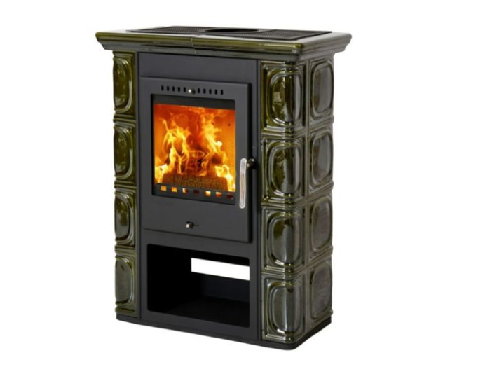 Klassischer Kachelofen Borgholm | Heizen mit 7,0 kW Nennleistung in Olivgrün