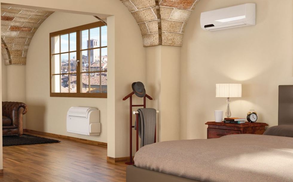 Wärmepumpe Klimaanlage. Dank dieser Funktion können Sie traditionelle Heizung in den Übergangszeiten ersetzen oder unterstützen.