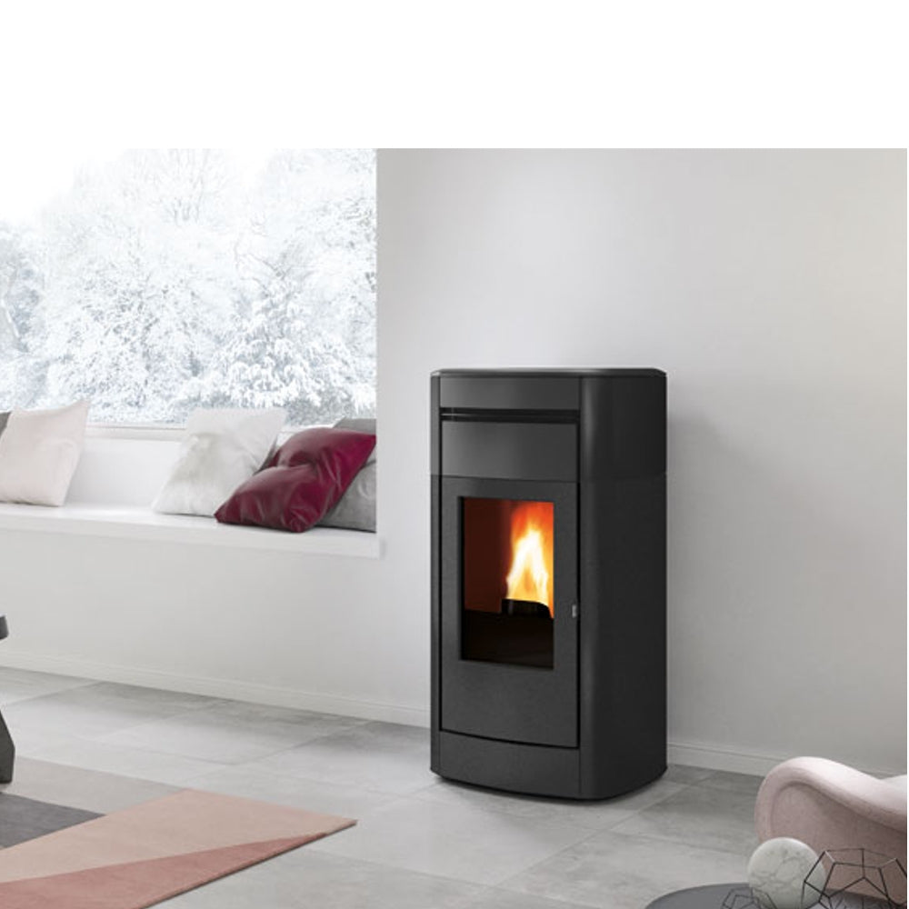 Edilkamin Vyda | Stahl, Zierleiste Keramik dunkelgrau | 14 kW