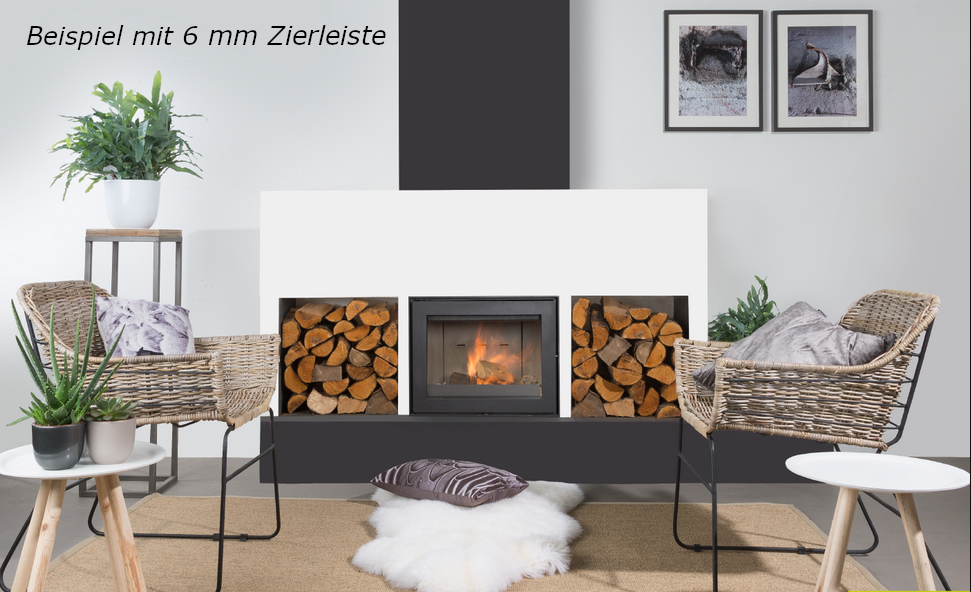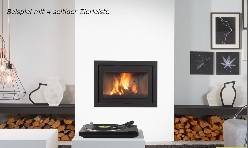 Erweitern lässt sich der Kamineinatz noch mit 3 verschiedenen Zierleisten und/oder einem externen Luftanschluss, falls die Belüftung in Ihren Räumen nicht ausreichen sollte.