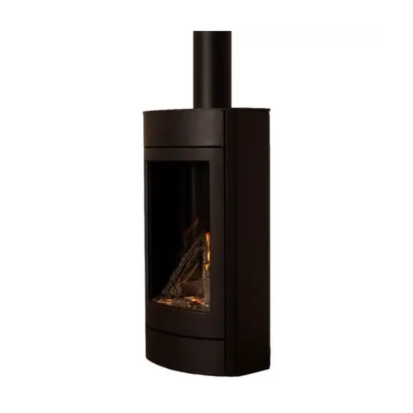 Ansprechender Gaskamin TALI mit flachen Korpusseiten in Schwarz | einfache Frontscheibe | 6 kW Leistung