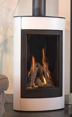 Ansprechender Gaskamin TALI mit runder Front in weiß | einfache Frontscheibe | 6 kW Leistung