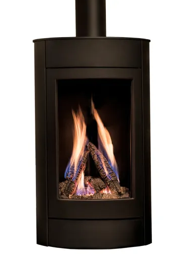 Ansprechender Gaskamin TALI mit runder Front in schwarz | einfache Frontscheibe | 6 kW Leistung