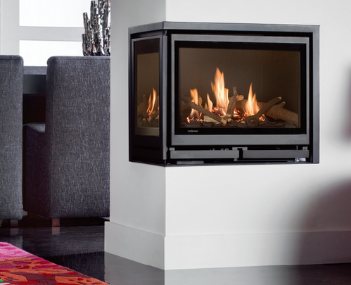 Der Ofen hat klare moderne Formen und integriert sich somit harmonisch in fast jedes Wohnkonzept. Durch die zweiseitige Sichtscheibe lässt sich entspannt das lodernde Feuerspiel verfolgen.
