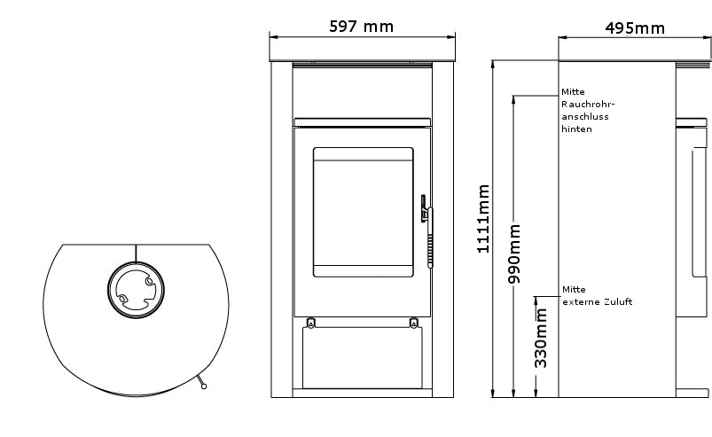 Das Rauchrohr kann wahlweise oben oder hinten Angeschlossen werden. Der Warmluftkaminofen besitzt zudem eine aktive Regulierung der Primär- und Sekundärluft. Die Scheibenspülung des Kaminofen Florida sorgt für eine klare Sicht auf das knisterne Feuer. Die Scheibenspülung des Ofen funktioniert über vorgewärmte Sekundärluft. Dadurch muss die Kaminscheibe äußerst selten gereinigt werden.