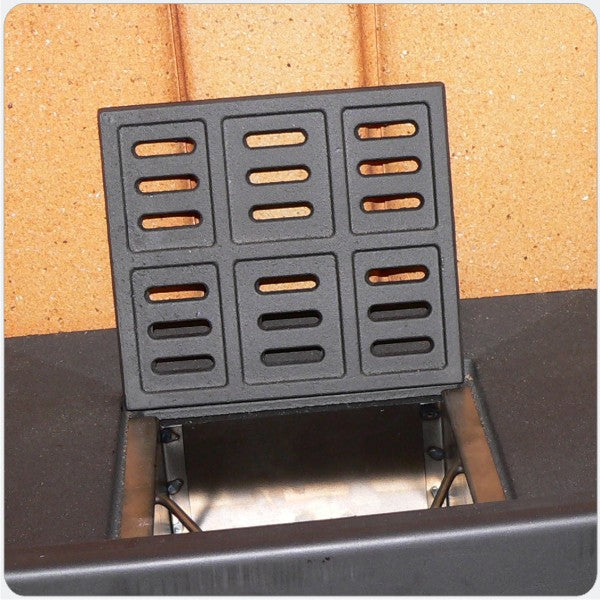 Der Kamin Aquatic WH V 750 wird standardmäßig mit einem passenden höhenverstellbaren Untergestell geliefert. In dem Untergestell ist auch immer ein innovatiever externer Luftanschluss verbaut. Der externe Luftanschluss macht den Kamineinsatz raumluftunabhängig.
