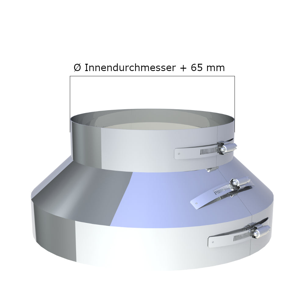 Die Öffnungsgröße des Wetterkragens entspricht Innenrohrdurchmesser + 65 mm.