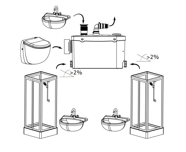 Die HiSewlift 3 ist eine kompakte Hebeanlage für häusliches Abwasser, das nicht über ein natürliches Gefälle der Kanalisation zugeführt oder natürlich entweichen kann. Die Anlage dient zur automatischen Sammlung und Entsorgung des häuslichen Abwassers und ist mit einer zuverlässigen Pumpe mit Schneidwerk ausgestattet.
