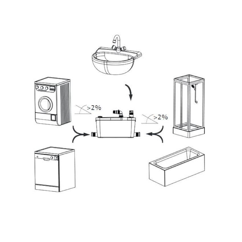 Bei nachträglichen Installationen von Hebeanlagen unterhalb der Rückstauebene erschweren bestehende Gegebenheiten die Montage von Hebeanlagen. Hinzu kommt, dass diese oft im sichtbaren Bereich eingesetzt werden müssen. Hier werden geräuscharme Hebeanlagen mit flexiblen Anschlüssen benötigt, die formschön in vorhandene Sanitäranlagen integriert werden können.