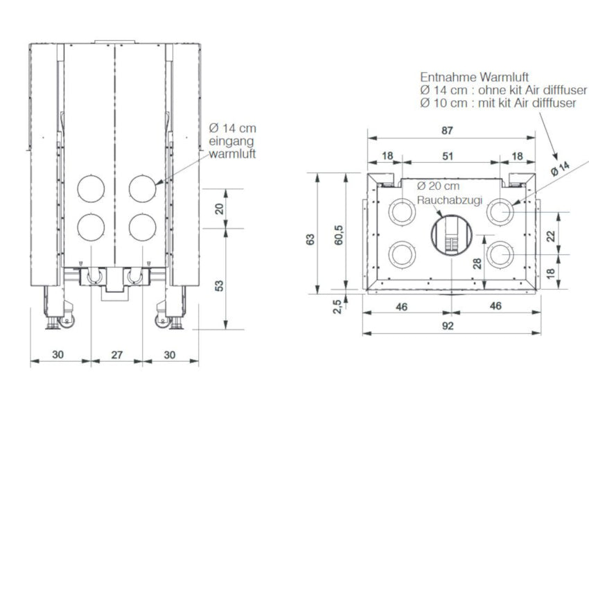 • Optional: Kit für die Warmluftverteilung in bis zu vier Nebenräume (je nach Kit)