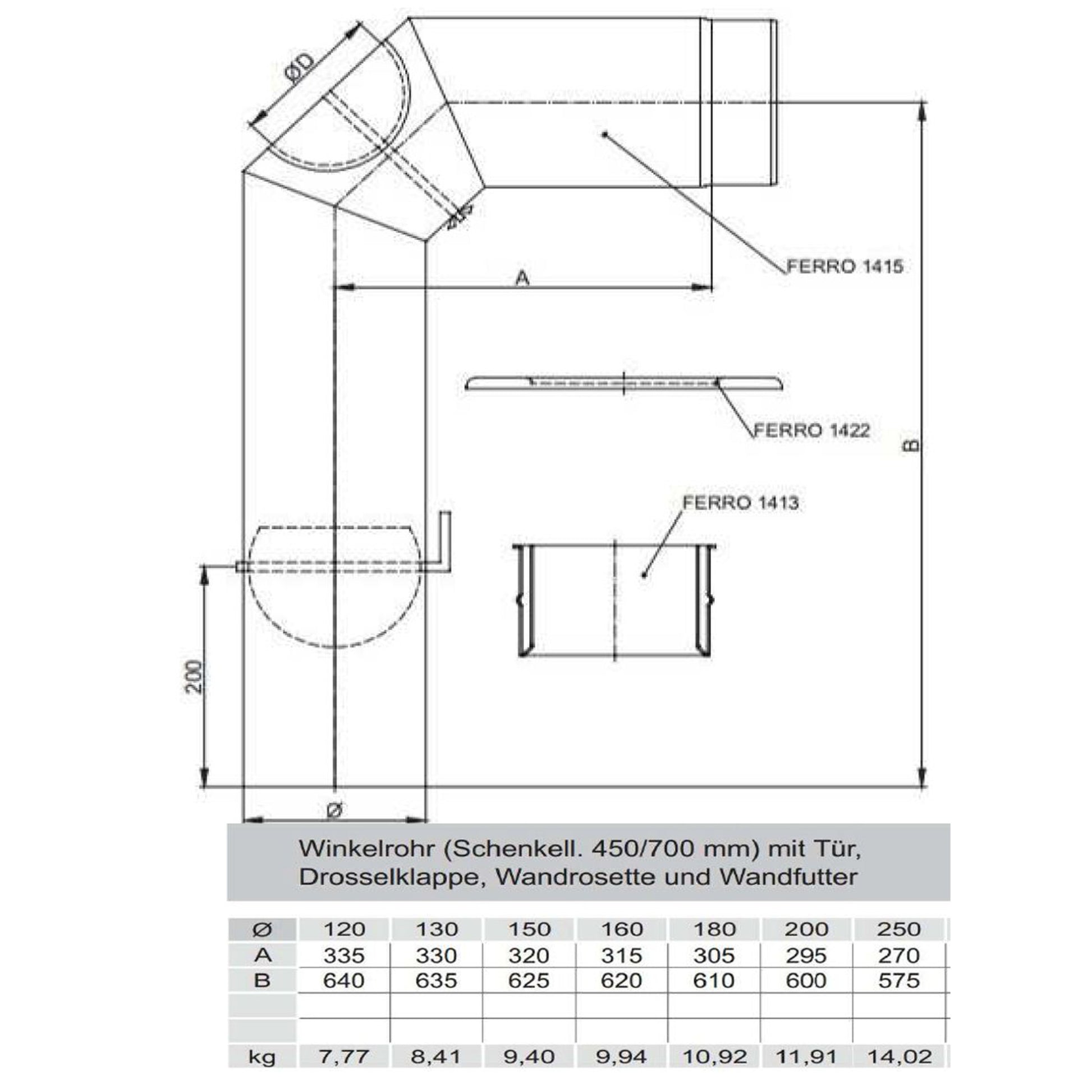 Winkelrohr Set Ferro-Lux vom Hersteller Jeremias ist zum Anschluß eines Kaminofens an einen Schornstein. Verbindungsleitung aus Stahlblech DC01 (ST12) mit eingezogener Steckverbindung, für den Einsatzbereich im Wohn- und Sichtbereich für den Anschluss an Kaminöfen.
